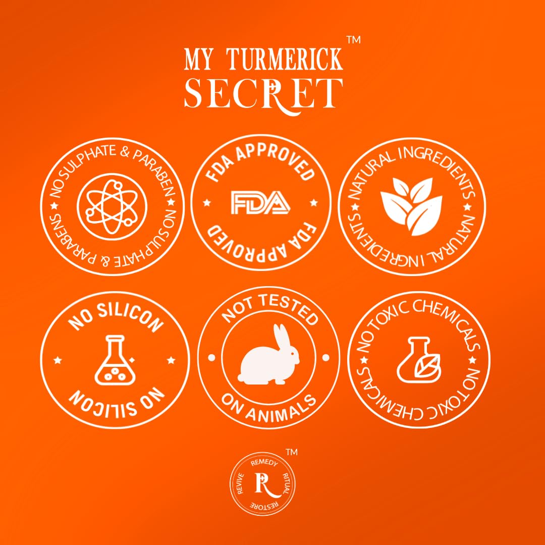 Aqua (Distilled water), Kaolin, Acacia Senegal Gum, Glycerin, Bentonite, Xylitol, Curcuma Aromatica (Wild Turmeric) Root Powder, Curcuma Longa (Turmeric ) Root Extract, Curcuma Longa (Turmeric) Oil, Glycyrrhiza Glabra (Licorice ) Root Extract, Calendula Officinalis Flower Extract, Simmondsia Chinesis (Jojoba) seed oil, Heptyl Undecylenate, Beta vulgarisn(Beet )Root Extract, Hibiscus sabdariffa Flower Extract, Silica, Squalene, Magnnesium Aluminium Silicate, Bakuchiol, Resveratrol, Rubia Cordfolia Stem (Manjistha) Extract, Titanum Dioxide, Zinc Oxide, Cetostearyl Alcohol, Citric Acid, Sodium Gluconate, Copper Peptide, Papain, Phenoyethanol